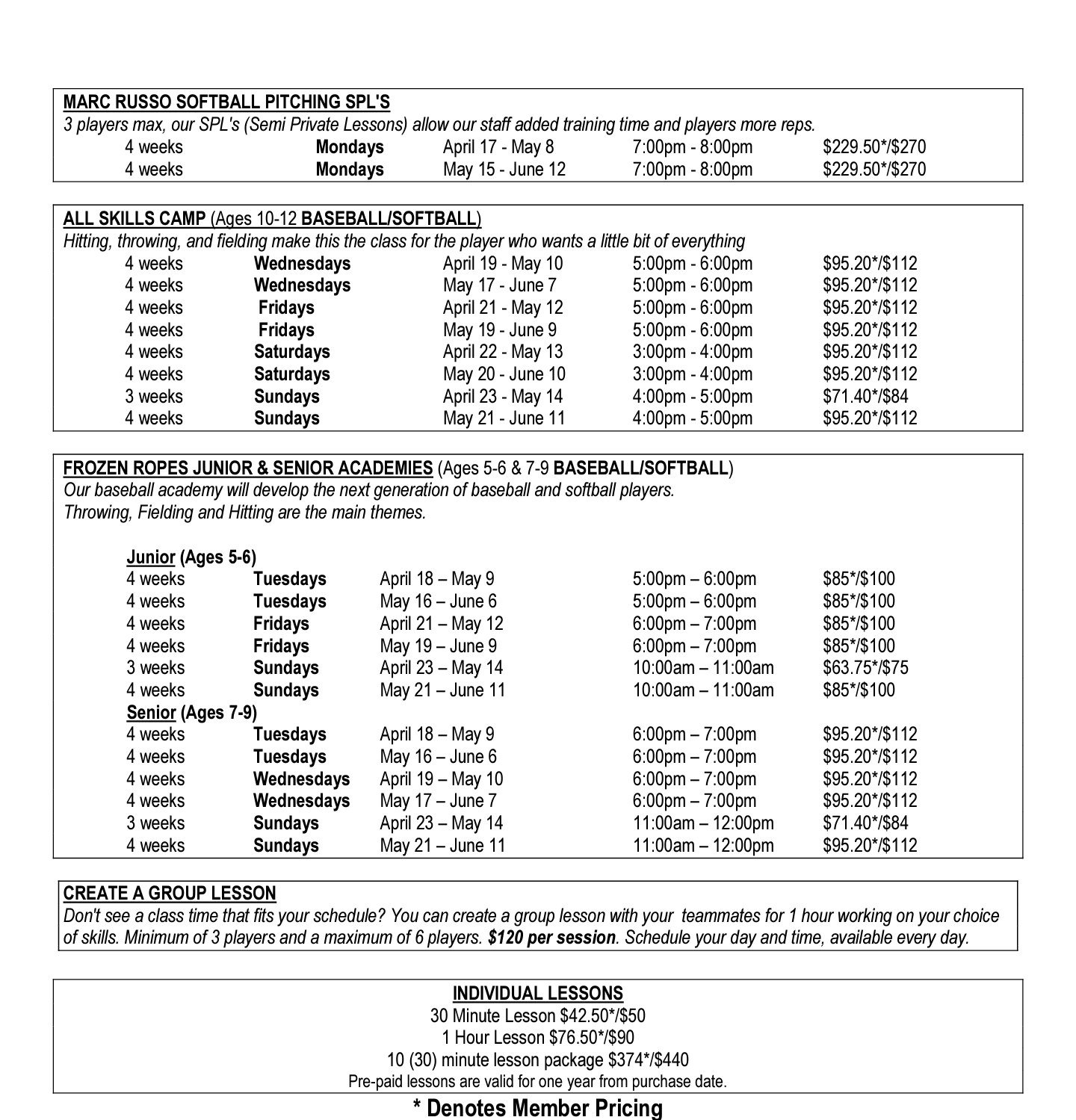 • Private Lessons