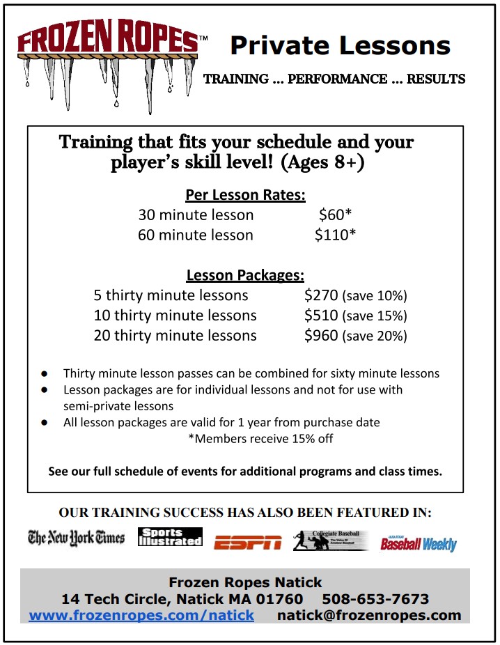 Individual lessons and our SPL’s (semi-private lessons) afford our staff the ability to fine tune movements, address in-game performance issues and also provide more reps during training. You select the specific skill you want to learn, we deliver it in a personal setting!